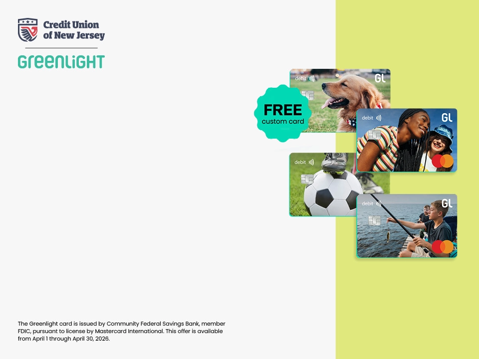 Annual Percentage Rate (APR) effective as of October 1, 2022. Subject to credit approval. Financing available up to 60 months. Rates as low as 7.24% for 36 months, 8.24% for 48 months, and 9.24% for 60 months. Rates are based on credit worthiness. Payment amount is determined by APR and term. The loan payment is $30.99 per $1,000 borrowed at 7.24% for 36 months. The loan payment is $24.53 per $1,000 borrowed at 8.24% for 48 months. The loan payment is $20.88 per $1,000 borrowed at 9.24% for 60 months. Rates subject to change at any time. A five-dollar ($5.00) donation to the CU of NJ Foundation qualifies you for membership if you’re not already eligible through an employer group.